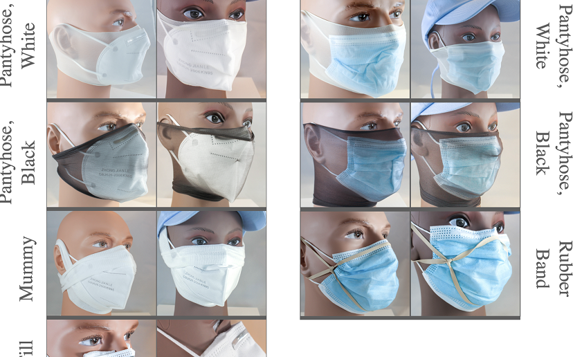 根據《每日郵報》報導,劍橋大學的研究刊登在學術期刊PLOS ONE的2月號,研究召募了4名志願者進行測試,分別針對外科口罩和KN95口罩進行測試,兩種口罩皆搭配7種增加口罩與臉部密合度的方法,除了原有的一般型態之外,分別將耳掛打結、口罩兩側貼上布膠帶、用白色和黑色絲襪套住、用橡皮筋綁成口罩支架、用繃帶沿著口罩周圍綁在耳上,最後則是用紗布塞住口罩內部填滿空隙。