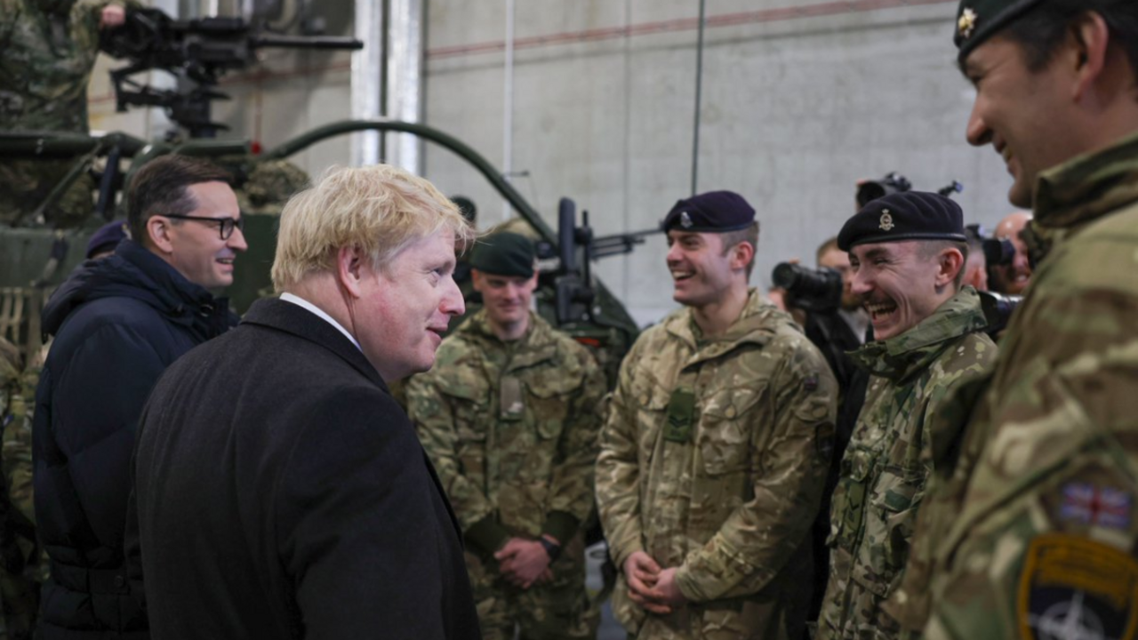 英國首相約翰遜在波蘭向英國軍人說,我要感謝目前在歐洲服役的我國武裝部隊的每一位成員,他們與北約的同行在其東側並肩作戰。我們團結一致,堅定不移地致力於歐洲的安全,反對那些試圖破壞歐洲的人。