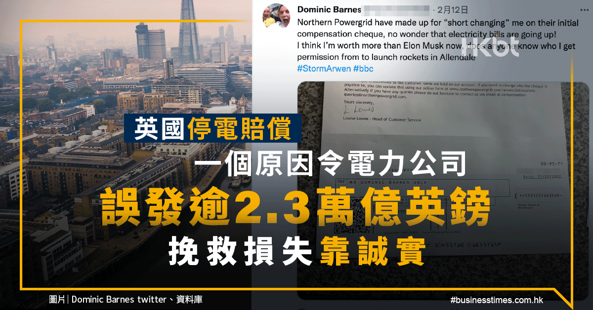 英國停電賠償|誤將賠償金額寫成電錶號碼