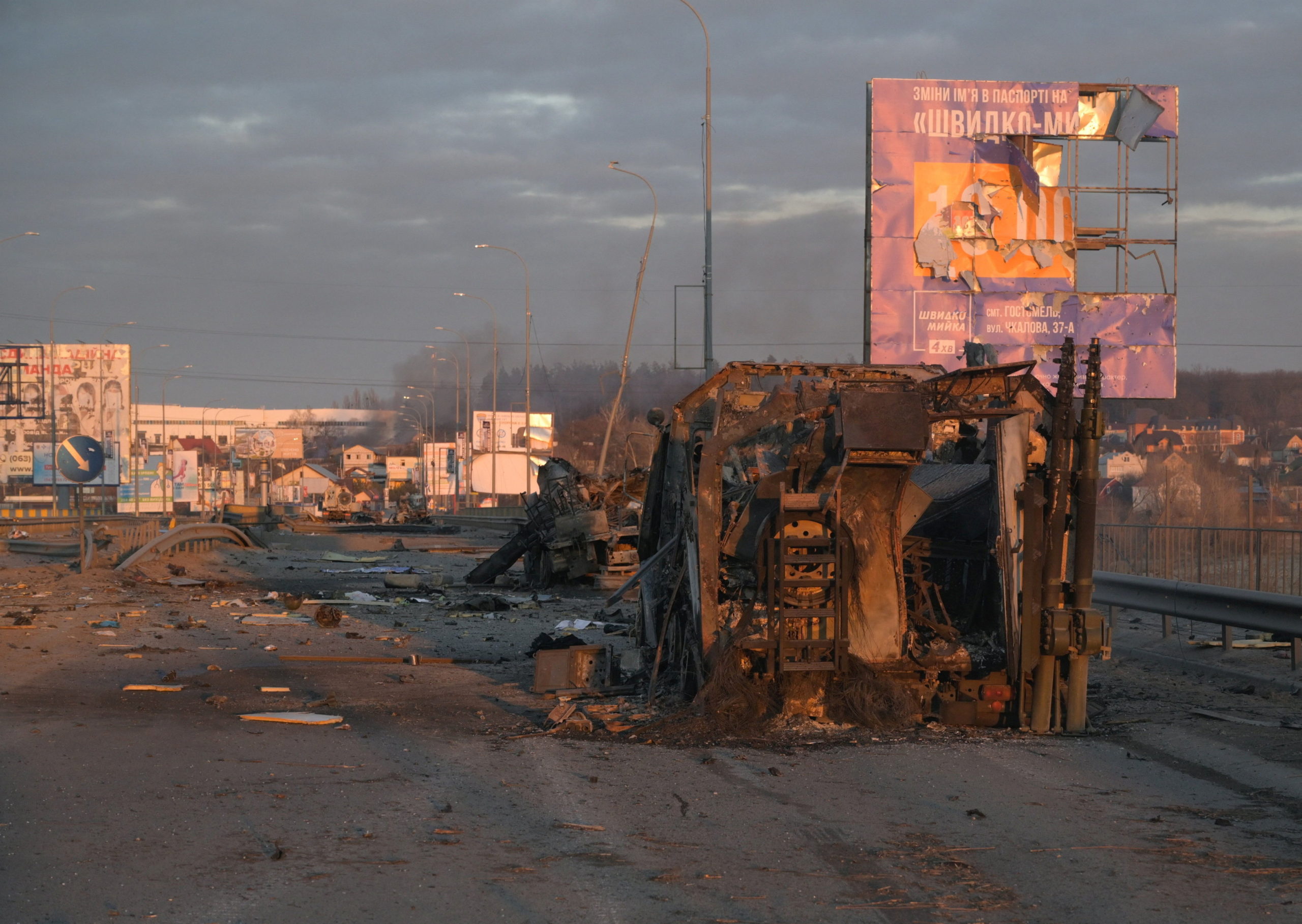 《天空新聞》首席記者拉姆塞(Stuart Ramsay)團隊4日欲離開基輔,經過近郊的布察(Bucha)一座檢查哨站時突遭埋伏附近的俄軍偵察小隊攻擊。他先是聽見一陣輕微的爆炸聲,接著感覺到他們乘坐的車爆胎,導致車子在荒涼的街道上停下,下秒就有無數子彈擊中前方擋風玻璃。