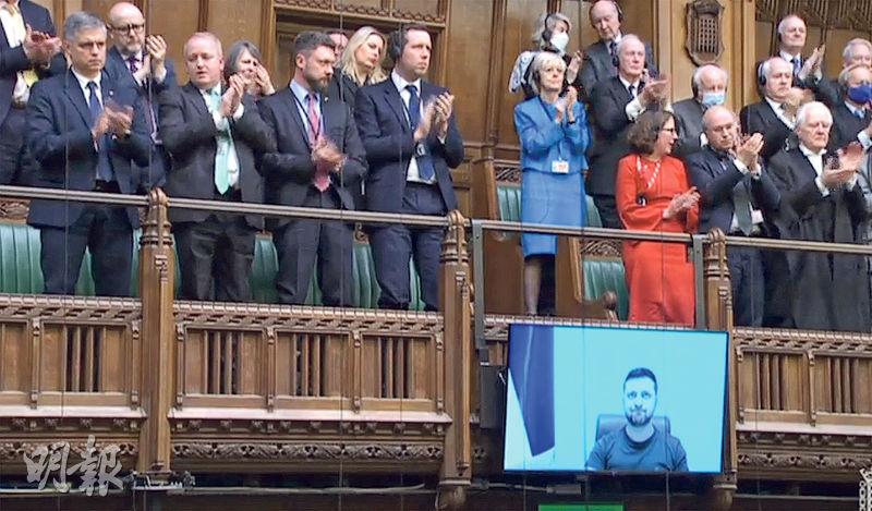 【明報專訊】烏克蘭總統澤連斯基周二(8日)以視像形式在英國國會發表演說,其間引用二戰時期英國首相邱吉爾演說用語以及英國文學巨擘莎士比亞名句,獲得出席者熱烈掌聲。今次是首次有其他國家的領導人在英國國會下議院發表演說。