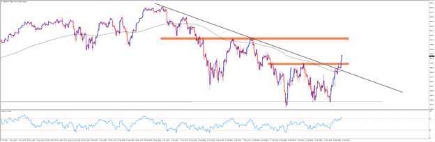 日本央行的鴿派政策加之避險需求的減少,使得日元兌美元已經跌至了 6 年多來的最低水平。USDJPY 甚至突破了 1998 年以來的下降趨勢線的壓製。