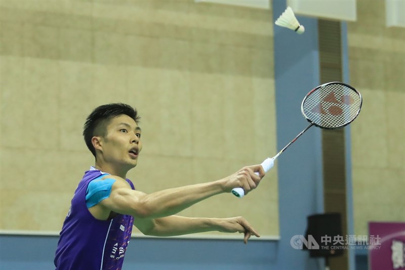 台灣羽球一哥周天成日前在英國採檢確診COVID-19。(中央社檔案照片)