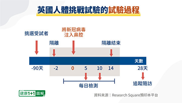 英國人體挑戰實驗的試驗過程,注射病毒後每日檢測。(健康1+1/大紀元)