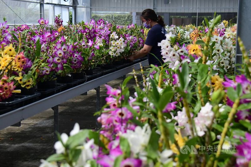 台東區農業改良場為提升台灣春石斛產業競爭力,針對未來國際市場需求的重要特性,包括提升花徑、減少低溫需求等,歷經9年雜交選育,已獲得6個新品系登錄英國皇家園藝學會及命名1個新品種。中央社記者盧太城台東攝 111年4月9日