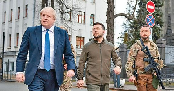 約翰遜周六突然現身基輔,與澤連斯基走訪街頭,多名軍人持槍貼身保護。約翰遜宣佈,英國將會提供新一批軍備給烏,包括一百二十架裝甲車及新的反艦導彈系統,同時透過世界銀行向烏額外提供五億美元貸款,以及放寬大部份烏國商品關稅。