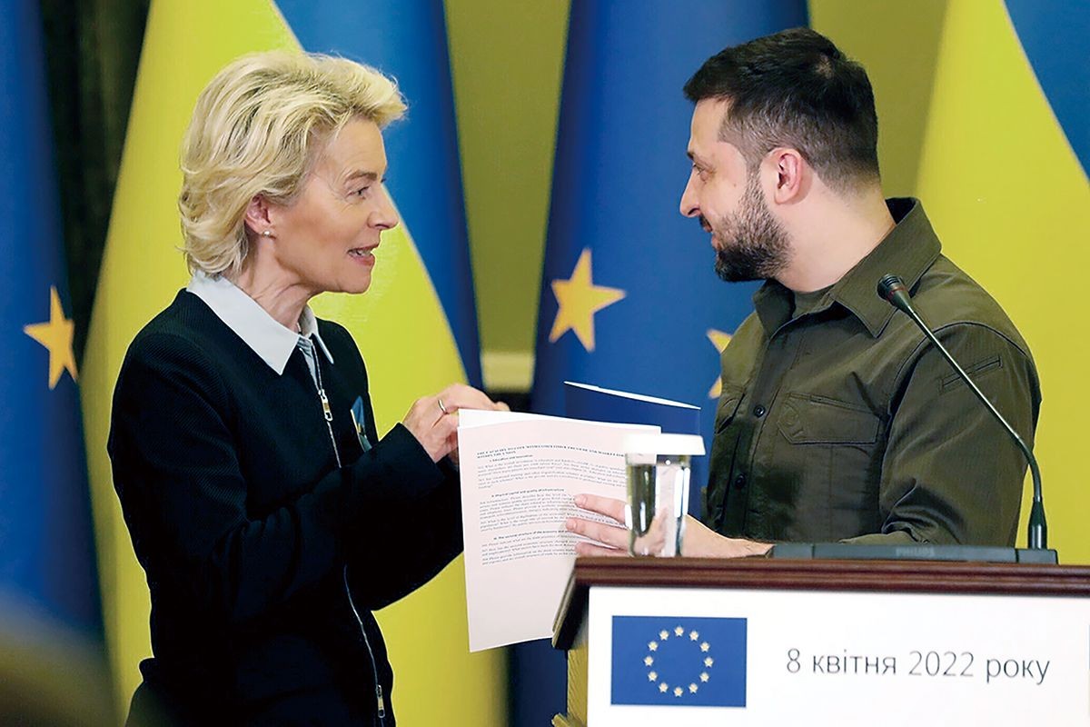 歐盟執委會主席馮德萊恩向澤連斯基轉交問卷表格。