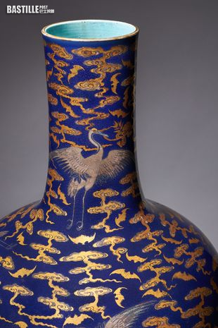 從曝光的照片可見,花瓶高度近61cm,上面使用明亮的金色、銀色上釉,瓶上則有飛鶴、蝙蝠等代表長壽和繁榮等動物。