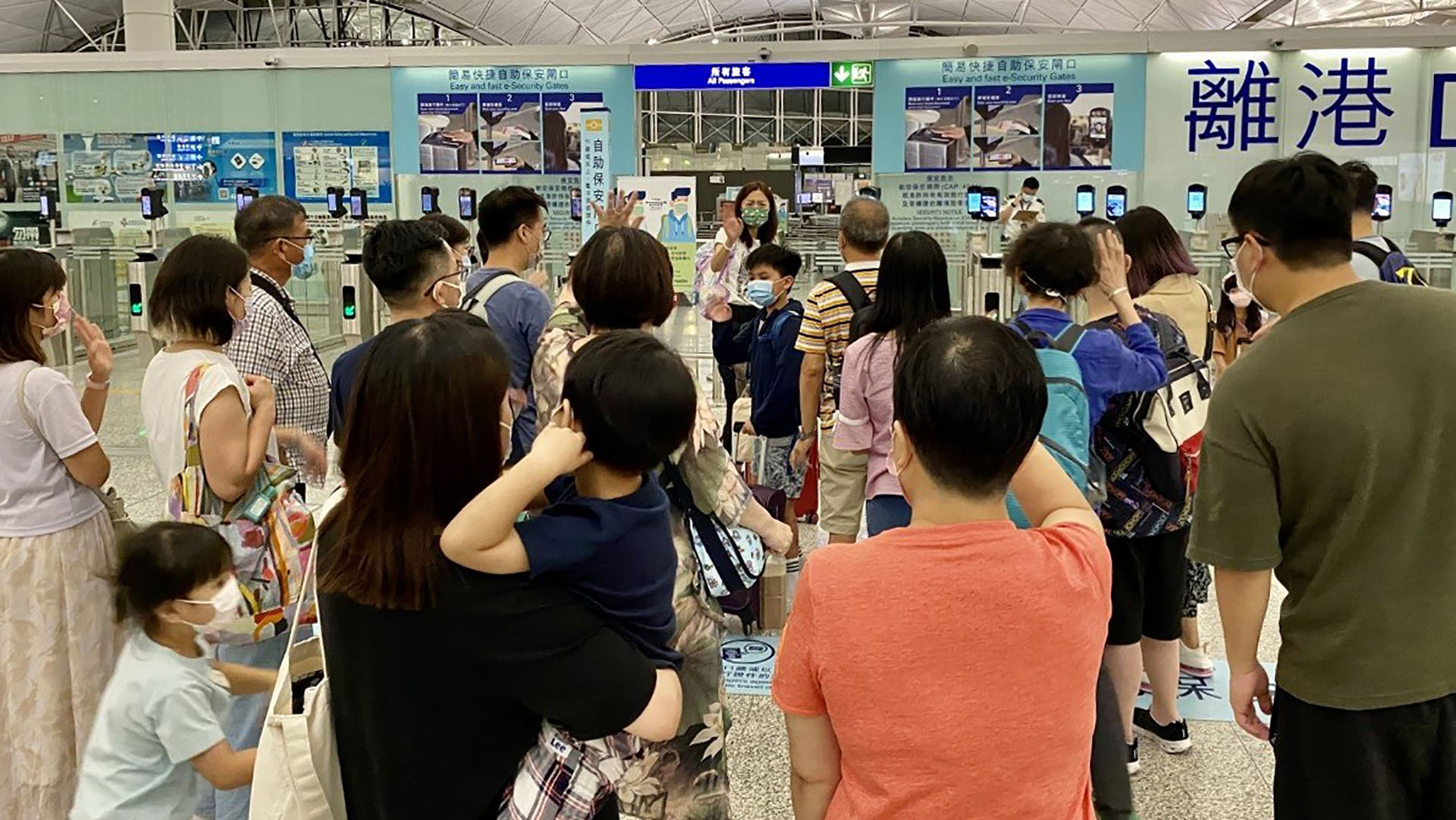 在今年香港第五波中共病毒疫情下,離港人數未因疫情改變。有傳媒統計,今年2月份,平均每天有1,890名港人經機場出境。