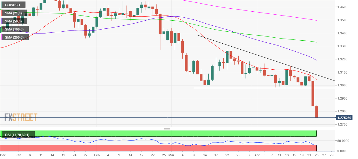空頭依然全面主導市場,下跌勢頭沒有減弱跡象。若嘗試反彈,收復1.28是關鍵。