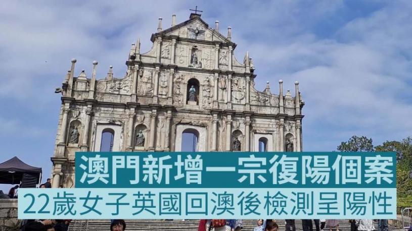 澳門新型冠狀病毒感染應變協調中心公佈,過去一天,1名由英國回澳的澳門居民,新冠病毒核酸檢測呈陽性,被列為復陽個案,不納入澳門統計。