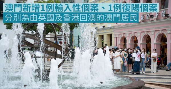 澳門新型冠狀病毒感染應變協調中心公布,過去一日1名由英國回澳的澳門居民,核酸檢測呈陽性,判定為輸入性無症狀感染者;另外,1名由香港回澳的澳門居民核酸檢測亦1呈陽性,被列為復陽個案,不納入澳門統計。