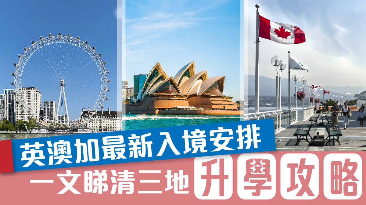 英國、澳洲及加拿大是香港學生的留學熱點,近日三地相繼放寬入境措施,完成接種認可疫苗的人士,毋須接受隔離,令有意負笈當地的學生感鼓舞。加上三地接連放寬移民政策,其教育及生活質素位居前列,課程種類亦繁多,畢業後更可選擇留在當地工作,發展前景理想。三地留學優勢吸引,應該怎樣選擇和部署?以下提供三地最新入境安排及升學途徑,讓家長和學生及早預備。