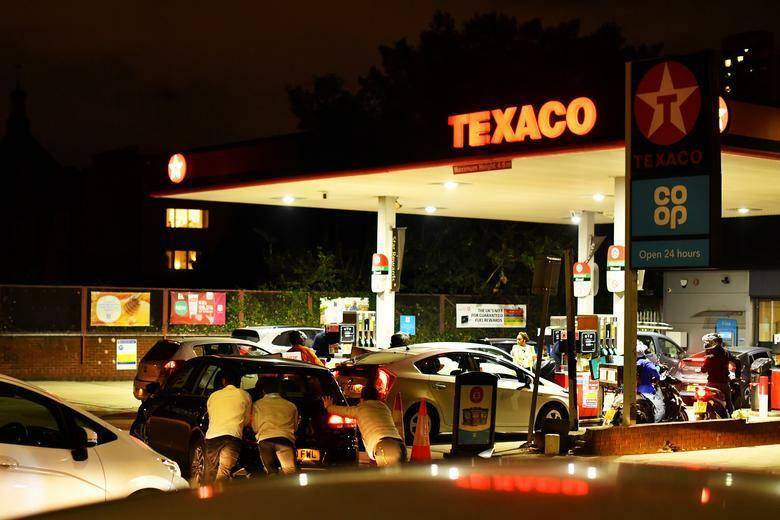 英國民眾6月9日為油箱55公升的自家汽車加滿汽油,費用超過100英鎊門檻,為史上首見。(路透)