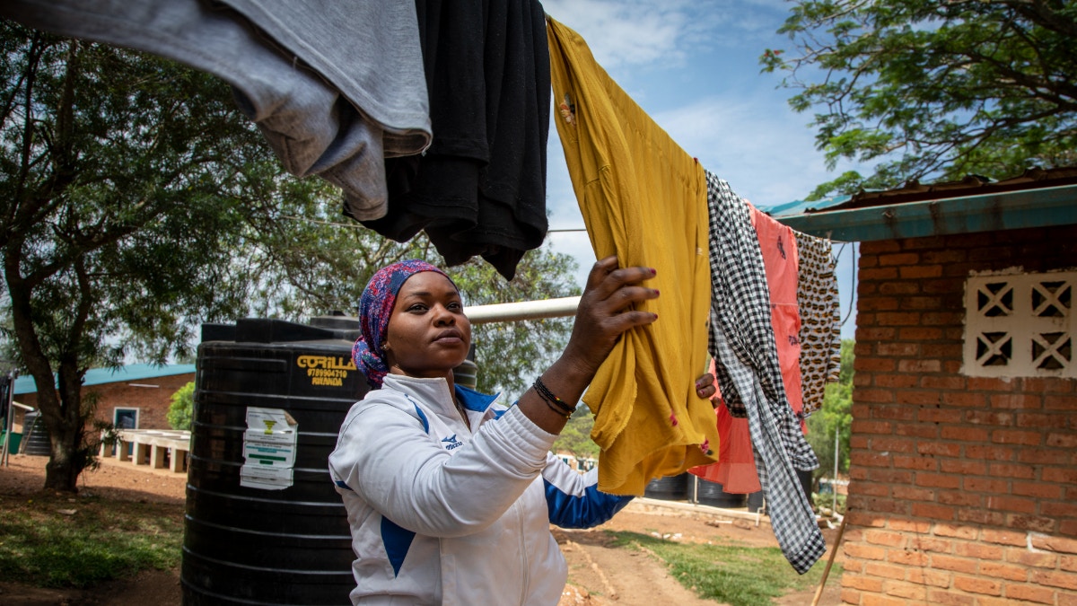 英國非法移民:某些從英國送往盧旺達移民抵達首都基加利後會入住霍爾馬克公寓。圖為6月10日,相關人員搬新家具到霍爾馬克公寓。(AP)