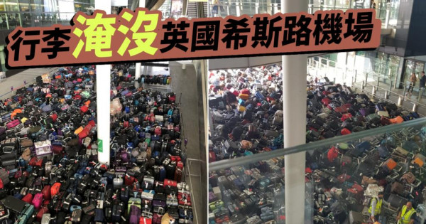 英國希斯路機場行李系統上周五(17日)一度發生故障,導致大批行李連日來在離境區堆積如山,旅客無法順利取回行李。至周一(20日),機場已要求航空公司削減一成航班,以便機場處理堆積行李。