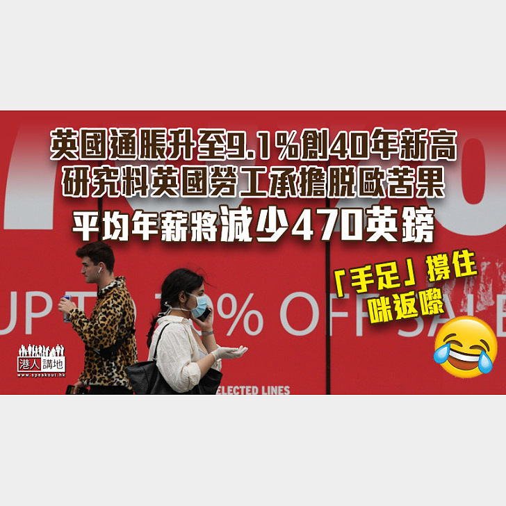 英國5月通脹率升至9.1%,創40年新高。而英國經濟因脫歐變得更加封閉,昨日公布的研究預估,脫歐對生產力與薪金造成長期負面衝擊,至2030年勞工年薪平均將減少470英鎊(約4522港元)。當初最撐脫歐的漁業,或會萎縮30%。