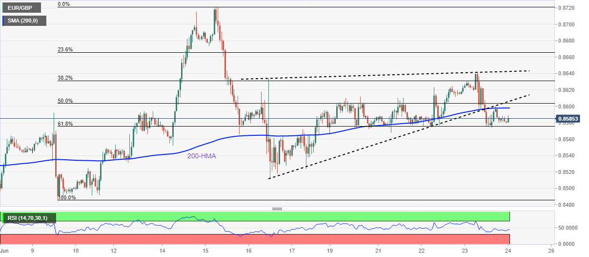 同時,匯價跌破 61.8% 斐波回撤位 0.8575 似乎是匯價跌向 6 月 16 日低點(接近 0.8510)的觸發因素。