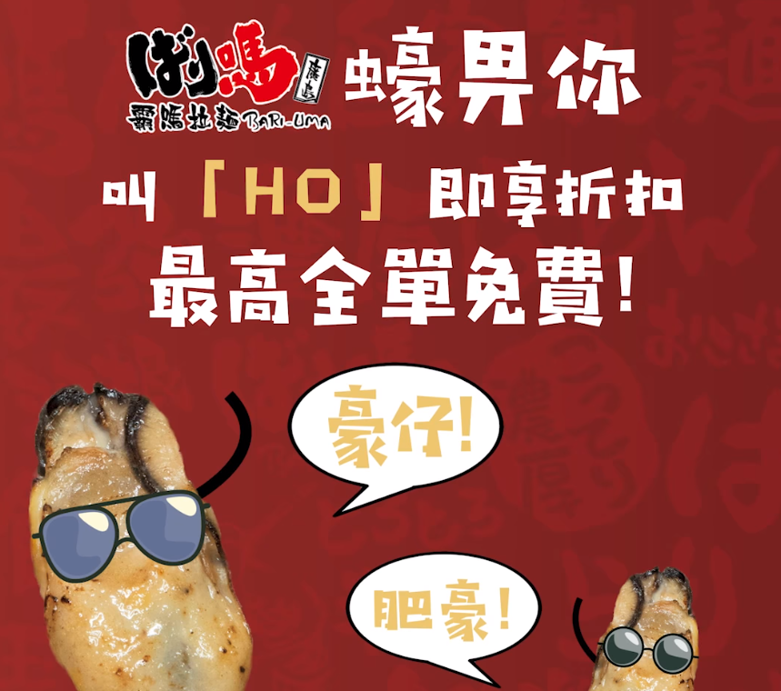 霸嗎拉麵加推英文指定名字優惠,由即日起至7月10日,只要身份證的英文名有包含「Ho」字,到霸嗎惠顧任何正價拉麵(包括並不限於牡蠣系列),即享以下優惠: