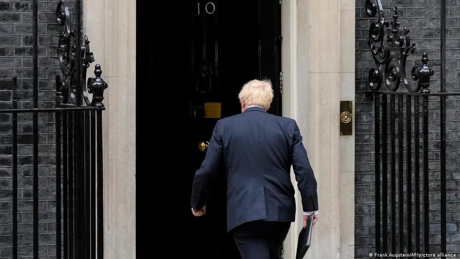 (德國之聲中文網)英國首相約翰遜(Boris Johnson)週四(7月7日)宣布辭去保守黨黨魁一職。他在唐寧街10號首相官邸前發表演說,稱將留任,直到保守黨選出新黨魁。他在辭任黨魁的演說中表示,「難過將放棄世界上最好的工作」,並稱「無法完成這麼多的構想和計畫,這當然很痛苦」,但他並沒有為近期一系列醜聞道歉。