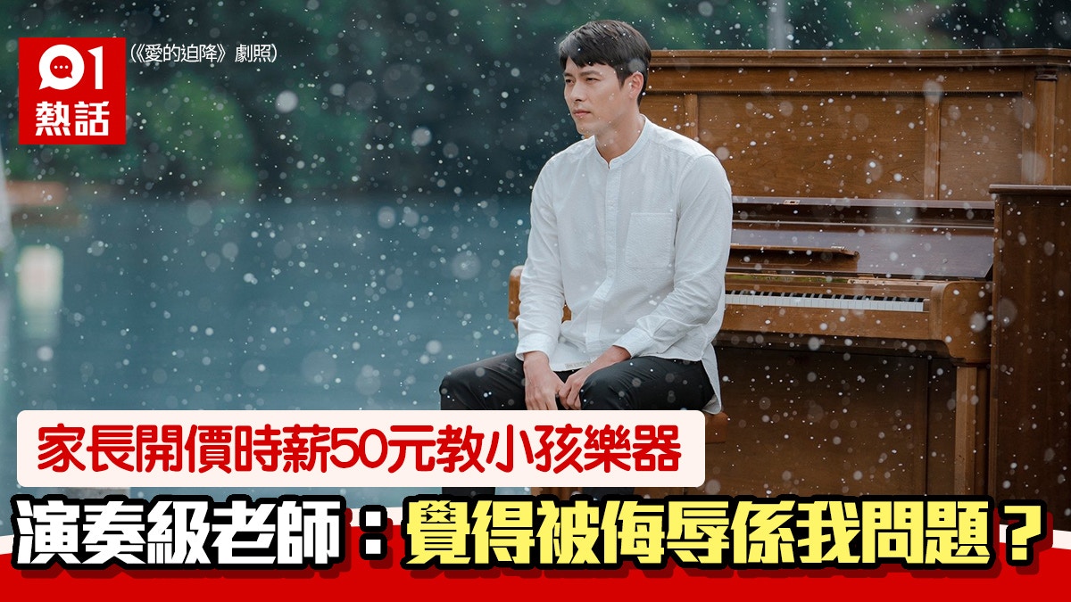 有樂器老師於網上發文表示,他有20多年教樂器經驗,考獲倫敦聖三一學院(Trinity)演奏文憑第2級LTCL資格,但日前竟有家長向他開價時薪50元教授小孩,令他深感侮辱。(《愛的迫降》劇照)