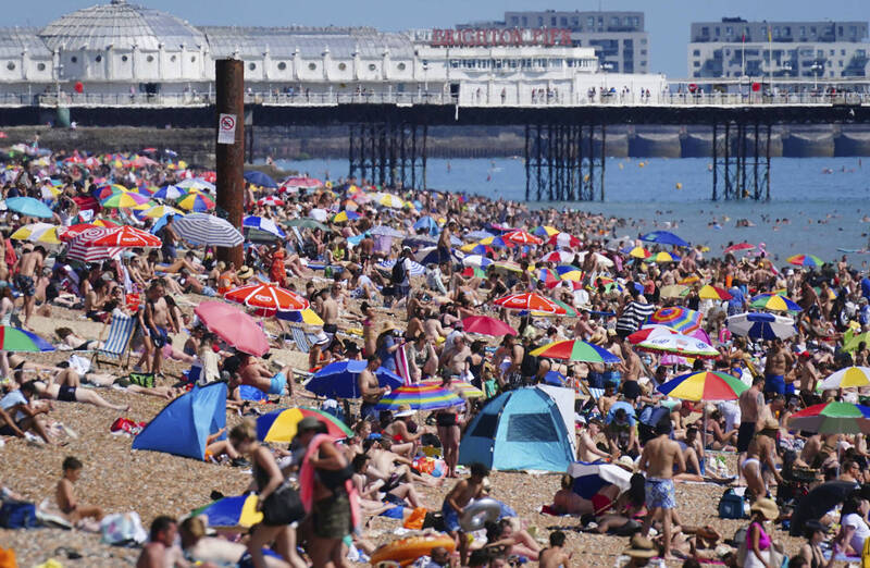 英國今日迎來了該國「史上最熱日」,高溫達40.2度。英國南部度假勝地布萊頓(Brighton)的海灘也擠滿了前來避暑的遊客。