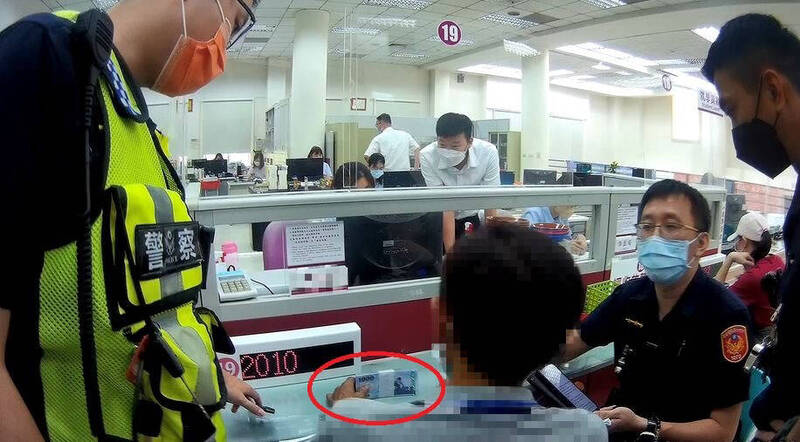 林男拿著新台幣9萬元現金,準備匯款給詐團。(警方提供)