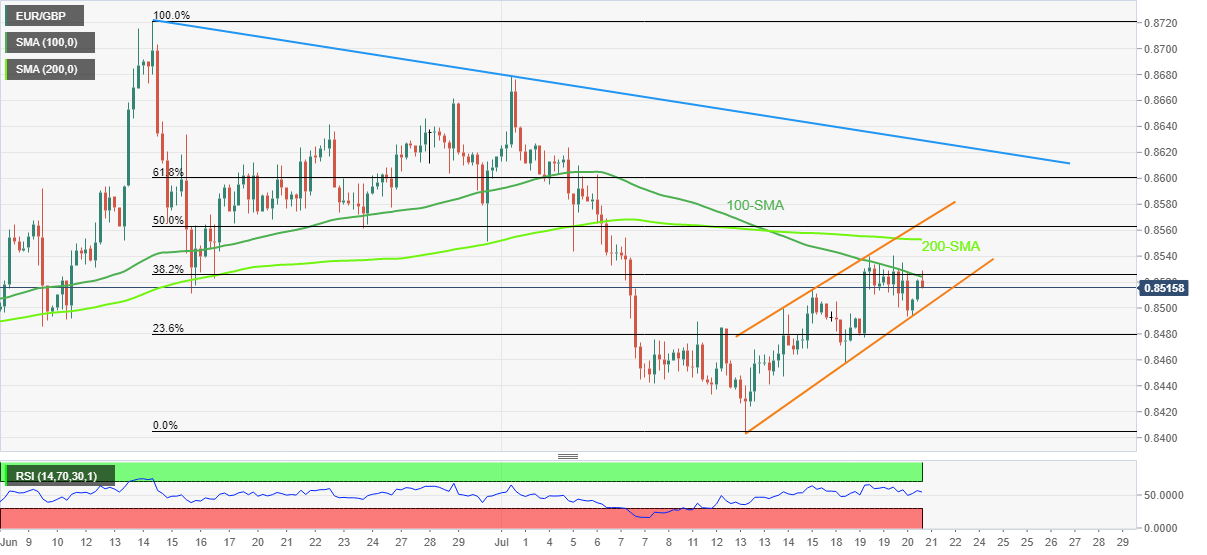 在此之後,最近低點0.8403和5月份低點0.8393對於歐元兌英鎊的看跌者來說至關重要。