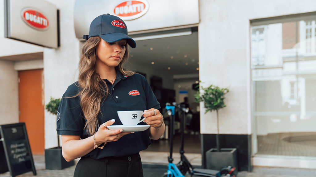 你可以向多數人一樣點卡布奇諾、濃縮咖啡、拿鐵、美式咖啡或瑪奇朵,但所有品項中最引人注目的莫過於售價50英鎊的陳列品是Ettore Shot濃縮咖啡,醇厚的濃縮咖啡汁液被裝在精緻的Bugatti碳纖咖啡杯中。你可以優雅地坐在令人驚嘆的Bugatti倫敦展示間裡,背後靠著的是Bugatti設計、以皮革和藍色碳纖維裝飾的扶手椅,靜靜欣賞眼前停放價值超過300萬美元(約台幣9,000萬元)的Bugatti超跑,如此這般豪奢體驗,你不是個億萬富翁就可擁有,聽起來是不是還不錯呢?