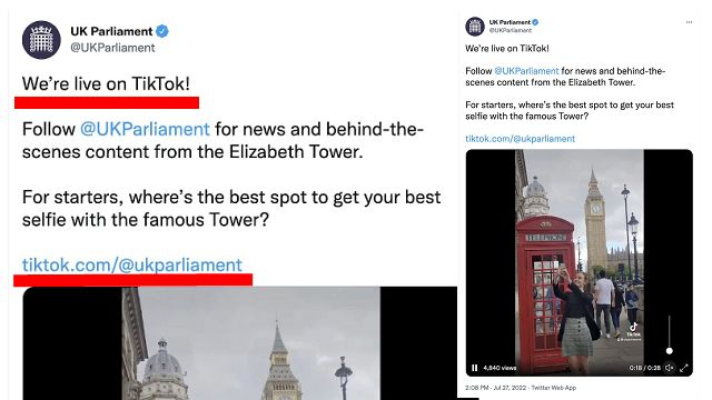 法新社報導,英國國會一名發言人說:「根據國會議員的意見,我們將提前關閉英國國會的TikTok測試帳號。」