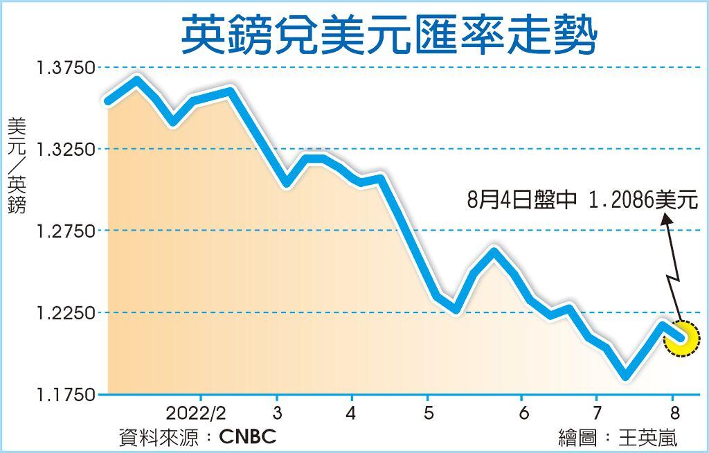 為了對抗高通膨,英國央行追隨美國聯準會(Fed)等各國央行的激進緊縮策略,4日決議升息2碼,創27年來最大升幅。英央同時預警,今年第四季起經濟將陷入衰退,且衰退期間將長達五季,是金融危機以來最久的景氣低潮。