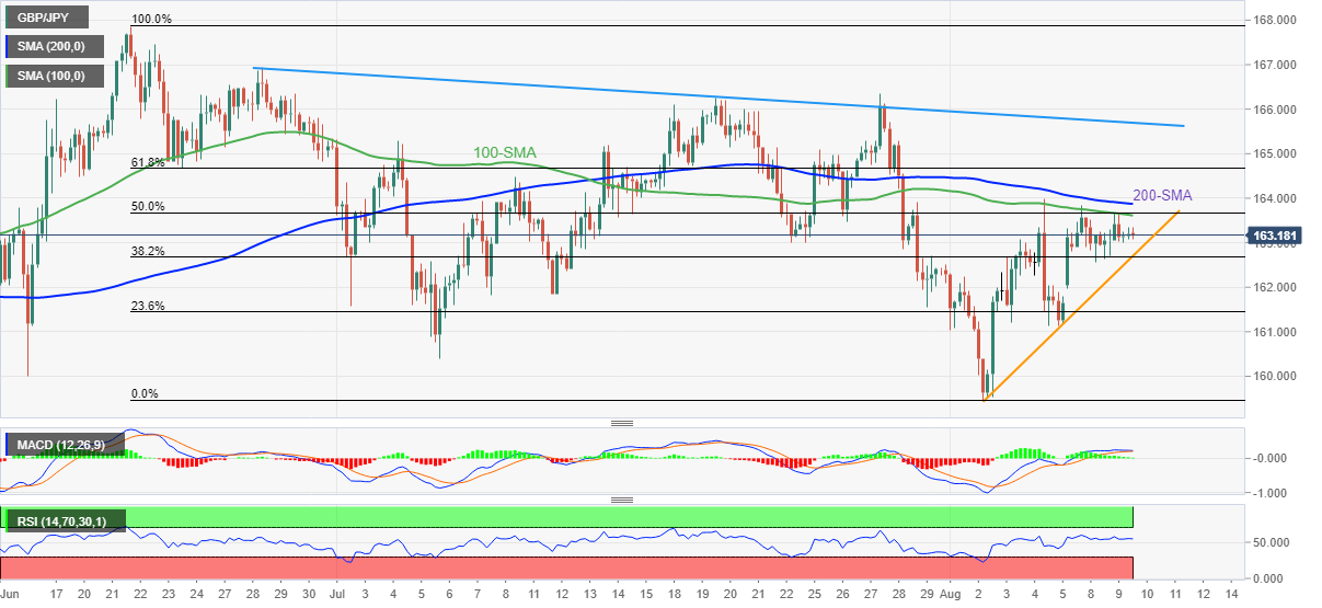 上行方面,100-SM​​A和6-8 月跌勢的50%斐波位匯合處163.60附近成為上行阻力。
