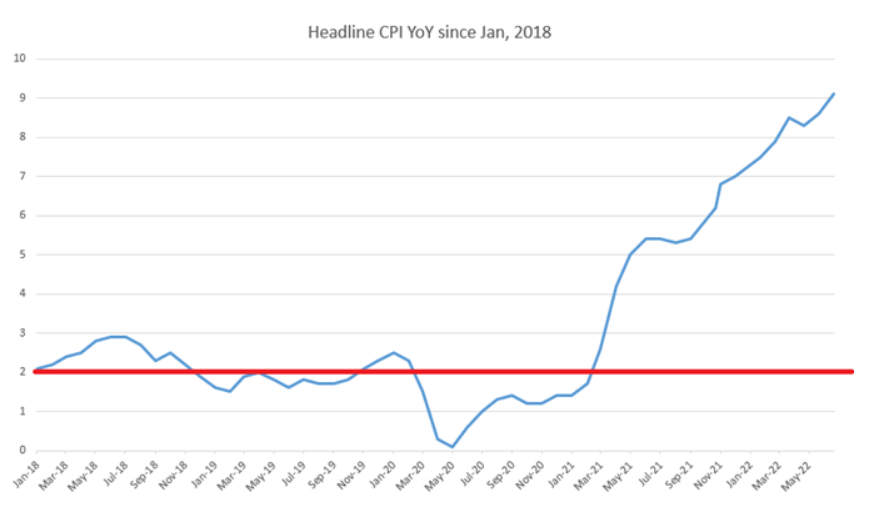 市場預期整體CPI將從上個月的9.1%回落至8.7%。但是,核心CPI預計將從上個月的5.9%增加到 6.1%。就美聯儲成員可能發表意見的問題而言,考慮到通脹仍遠高於2%的平均通脹目標,通脹降至8.7%是否會對美聯儲可能的政策產生任何影響將成為市場關注的焦點。