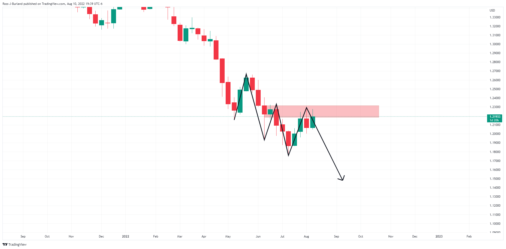 英鎊/美元已經打壓週線 M 形態頸線位,匯價目前很可能感受到一輪強勁的供應。