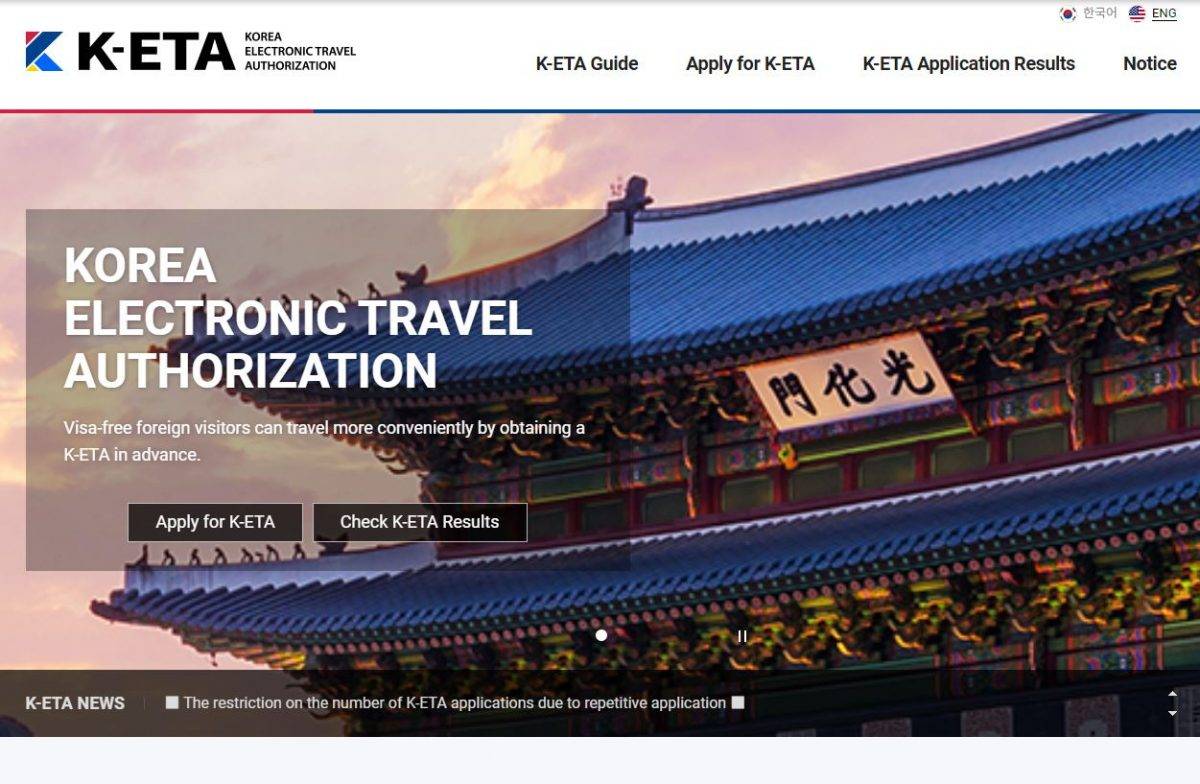 出發前72小時起到K-ETA官網填寫並遞交申請(網頁截圖)