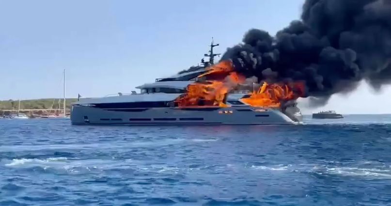 一艘由義大利大亨訂製的45公尺長、價值2000萬英鎊 (約7.3億元) 的超級遊艇Aria SF,周四在西班牙福門特拉島附近起火,冒出濃濃黑煙,從附近島嶼都清楚可辨,讓不少遊客看得驚呆了。