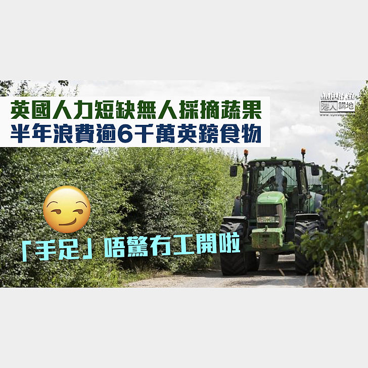 英國全國農民總工會周一(15日)表示,由於缺乏採收工,英國上半年浪費了超過6000萬英鎊(約5億7000萬港元)的食物。根據總工會一項研究,四成農民抱怨採收人力不足而蒙受損失,表示需要將招聘人數增加約一成四,並說一成七採收人員沒來上班,還有9%的人在合約到期前就離開。總工會副會長布萊德夏說:「在全國各地的家庭因生活成本飆升而難以維持生計之際,優質、營養的食物卻一直被浪費,實在諷刺。」