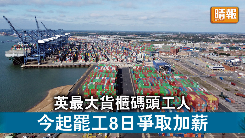英國面對40年以來通脹率新高位,對民生構成嚴重影響,再有工人罷工要求加薪,應付糧食及能源價格上漲。全英最大貨櫃碼頭、位於英格蘭東岸的費利克斯托(Felixstowe)港口,包括吊機操作員、裝卸工人和機器操作員在內的約1,900名工人,今日(21日)起罷工8日。