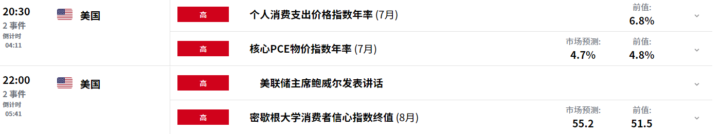 英鎊/美元重返1.80重要心理關口下方,回吐昨天的漲勢,日內市場重點聚焦美國方面的數據和風險包括萬眾矚目的傑克森霍爾央行年會。雖然PCE(個人消費支出物價指數)和消費者信心指數的影響力可能會被傑克森霍爾央行年會蓋過,但是數據的表現不應該被忽視,因為這將為美國的經濟狀況提供重要的信息。核心PCE(剔除食品和能源)是美聯儲偏愛的關鍵指標,預計其將溫和放緩,從而可能削弱美聯儲主席鮑威爾(Jerome Powell)發表講話之前美聯儲建立起來的非常鷹派的立場。美聯儲官員近期的講話多數都偏向實施更高的利率以抵抗通脹,因此如果鮑威爾決定改變這一立場則可能會令市場感到意外。