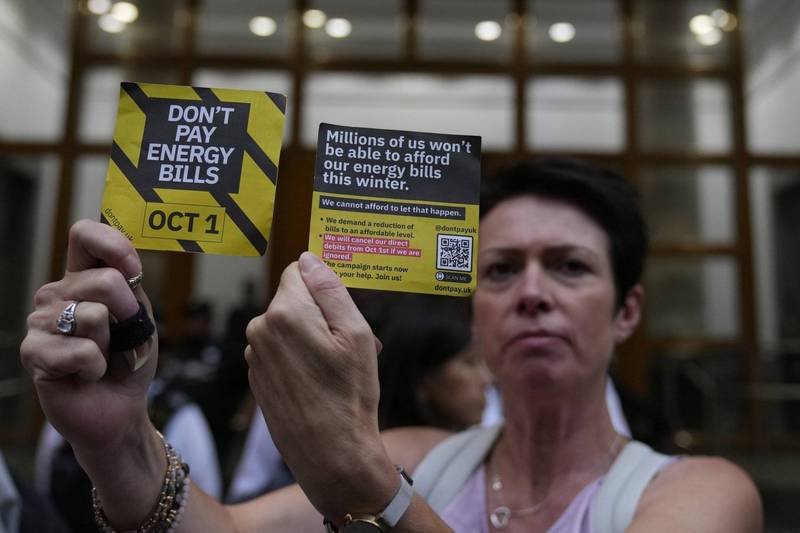 〔即時新聞/綜合報導〕受到烏俄戰爭影響,英國天然氣、電力價格上限飆升80%,經濟弱勢家庭恐將面臨健康問題甚至生命威脅。當地時間26日,上百位民眾聚集在英國天然氣及電力市場管制局(Ofgem)門口示威抗議,要求能源價格停止上漲。