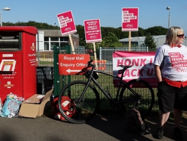 英國皇家郵政超過115000名員工因為薪資糾紛,在星期五展開為期四日的首階段罷工。
