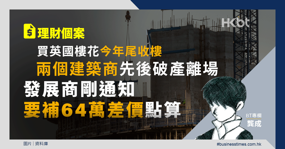 【理財個案】讀者於2017年買入英國曼徹斯特樓花單位,但兩個建築商先後破產離場,原定今年尾收樓,但發展商剛通知要補64萬差價才可收樓,可以點做?