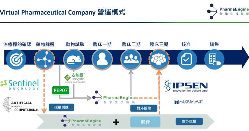 智擎(4162)9月25日公告與英國Sentinel Oncology公司簽署PEP07 (Chk1抑制劑) 全球獨家授權合約,總交易金額為140.5百萬美元。