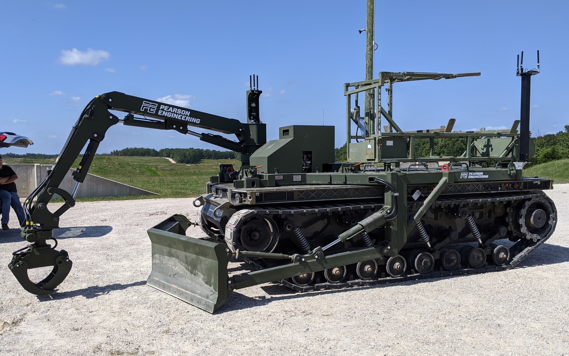 「Military Leak」網站3日報導,專精工程機械的英國皮爾森工程公司(Pearson Engineering Ltd.)公開亮相的新型無人工兵車,正式名稱為「自動戰鬥載具—戰鬥工兵」(RCV-Pioneer);該車本體是模組化預置框架設計的履帶載具,可因應不同需求,替換該公司的各種戰鬥工兵套件,執行清除障礙、檢測路線安全、突破雷區以及野戰架橋等多種任務。而得益於創新的升舉系統,能夠在2名士兵操作下,以約30分鐘的時間,快速地完成整合與拆裝各種工程套件。