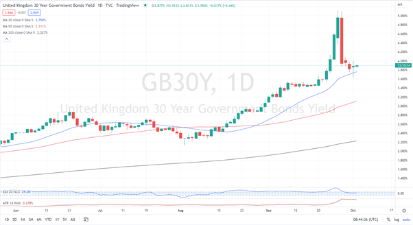 - 隨着英國國債市場的動蕩平息,英鎊強勢反彈