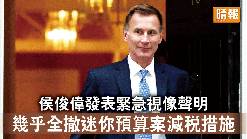 英國新任財政大臣侯俊偉在公布財政預算案前,發表緊急視像聲明,將早前「迷你預算案」中公布的減稅措施幾乎全部撤銷。