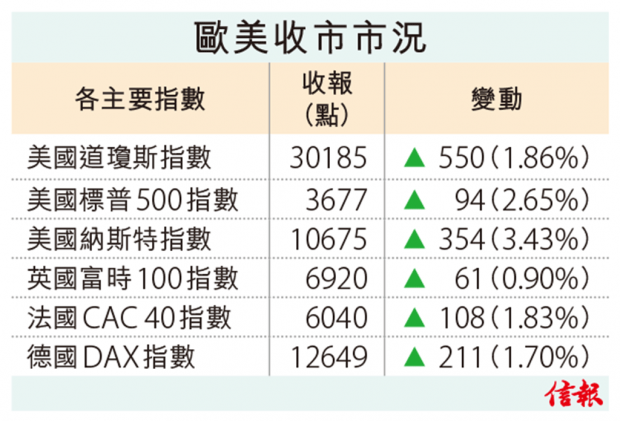 2022年10月18日 放大圖片 / 顯示原圖 英國新任財相侯俊偉撤回迷你預算案中差不多所有減稅措施,有助恢復市場對改善財政和控制通脹的信心,英國債息大幅回落,並帶動環球投資氣氛,美股道指周一早段勁彈超過600點,重上30000點關,英鎊急漲逾2%。 道指裂口高開424點後,升幅曾擴大至677點,高見30311點,標指最多揚升3%,達98%成份股 … (節錄) Source 文章導覽 美股收市|英鎊急升道指飆550點納指漲3.43% – 香港01 英鎊急彈逾2% 道指收市升550點納指漲3.4% – 香港01