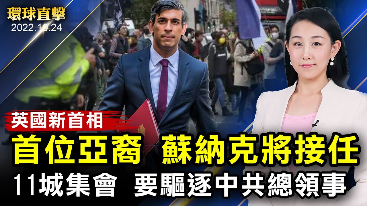 蘇納克獲唯一提名,將成首位亞裔英國首相;揭中共暴行,英11城集會要求驅逐襲港人共官