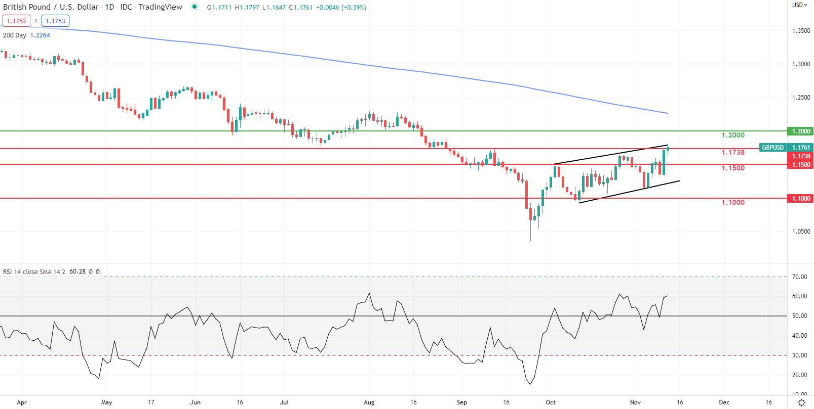從美元的角度而言,筆者認為市場可能過度誇大了上周CPI公布的影響,因此美元可能收復部分失去的收益。通脹率的幾次下降並不意味著通脹壓力一定會下降,也不意味著美聯儲正在進行轉向(Pivot)。值得注意的是,美聯儲仍走在積極的道路上(儘管較幾周前略有下降),這應該足以維持美元的強勢(特別是相對於較為弱勢的經濟體和貨幣,例如英國和英鎊)。這一基本面原因使得筆者相信英鎊的上行空間有限。