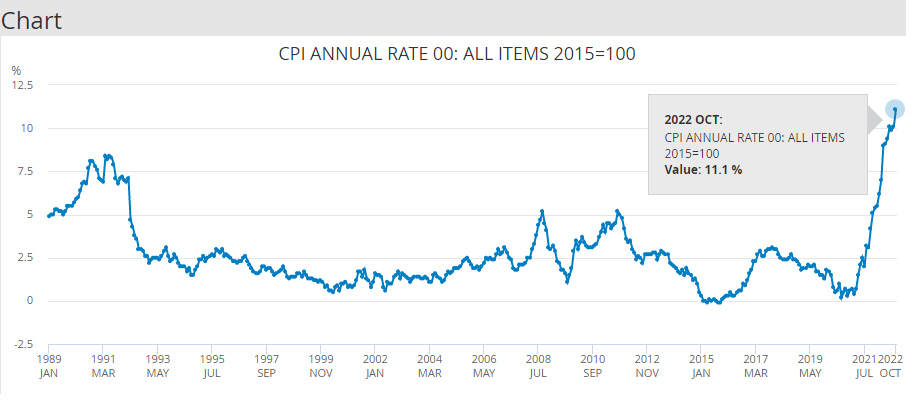 英國通脹數據再超預期,增速創1981年以來新高。英國10月CPI(消費物價指數)按年11.1%,預期10.7%,前值10.1%。英國10月核心CPI按年增6.5%,預期6.4%,前值 6.5%。